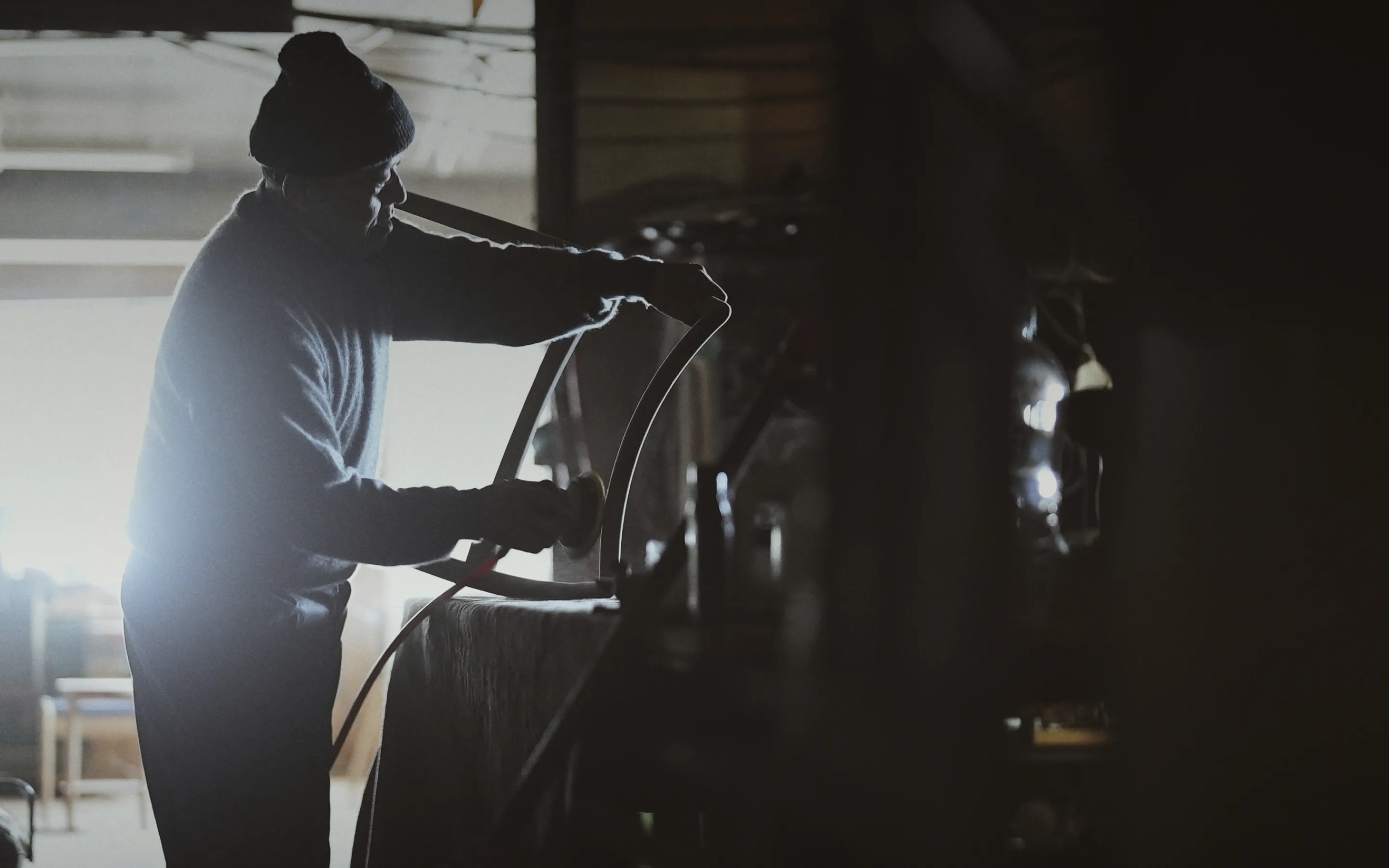 また「完成したフレームが朝日に照らされて工房内で輝いて見えた」と語るそのデザインは、自身の大好きな北欧名作家具以上の美しさを持っている。