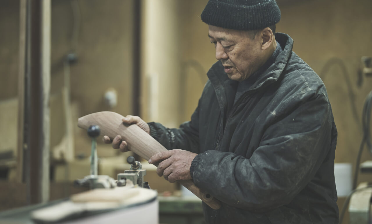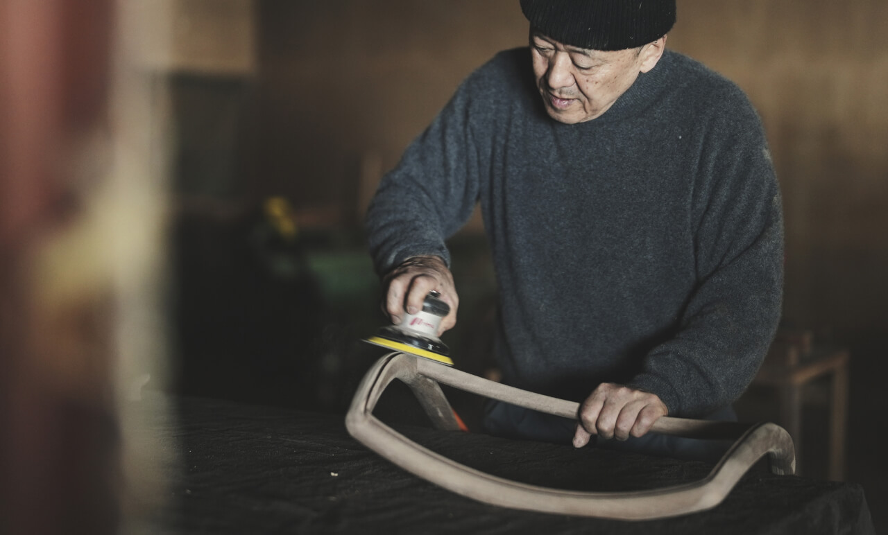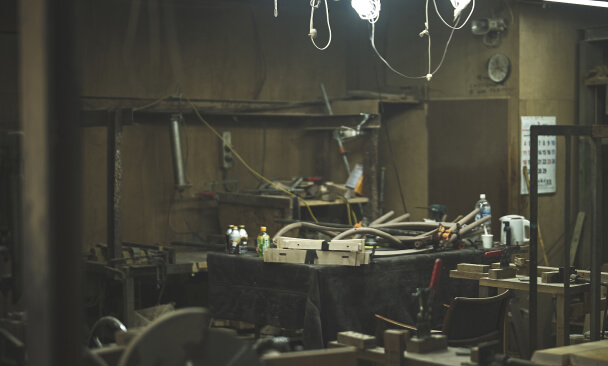 椅子の製作は30代から続けており、飛騨高山の名だたる企業のプロトタイプ作りに関わってきた。そのキャリアのスタートは異色で箱物家具や建具の製作、宮大工さながらの「組子欄間」の製作を得意としていた。