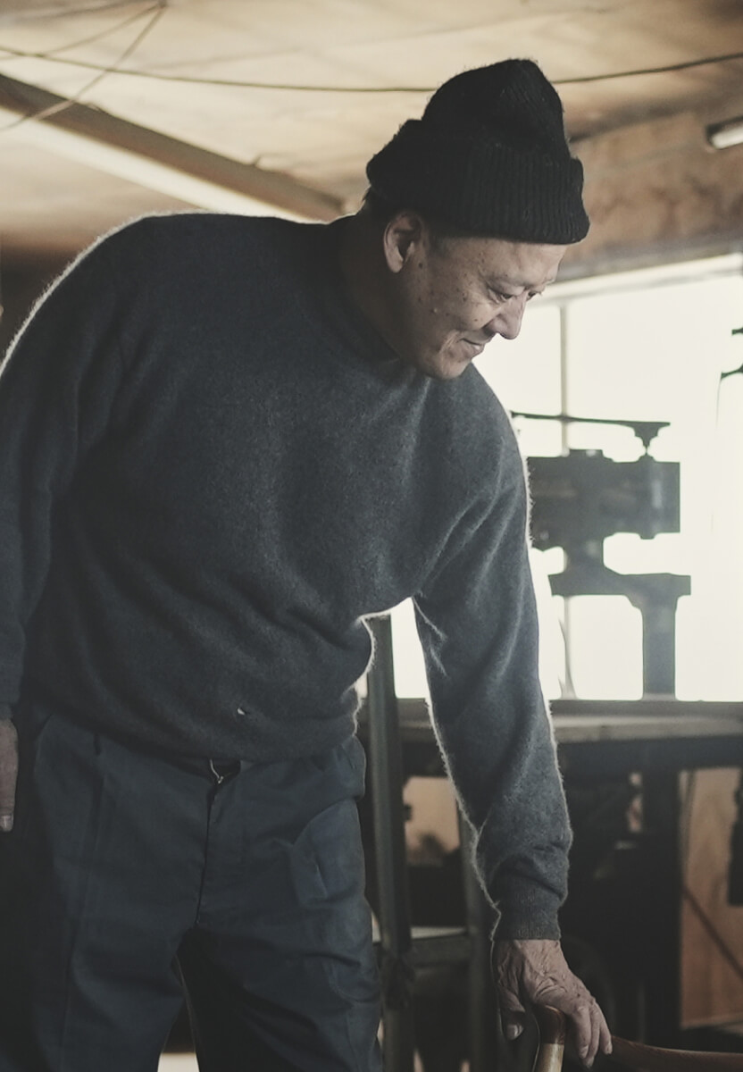 日本の脚物家具の聖地とも言える岐阜県高山市で木工家具職人として活動される川上 博一さん。家具職人としてのキャリアは実に半世紀近くになる生粋の職人である。「はじめはやりたいことがあったわけじゃない」と語る川上さんだが、50代で出会った一脚の椅子に衝撃を受けて、オリジナル椅子の製作を始めたという。