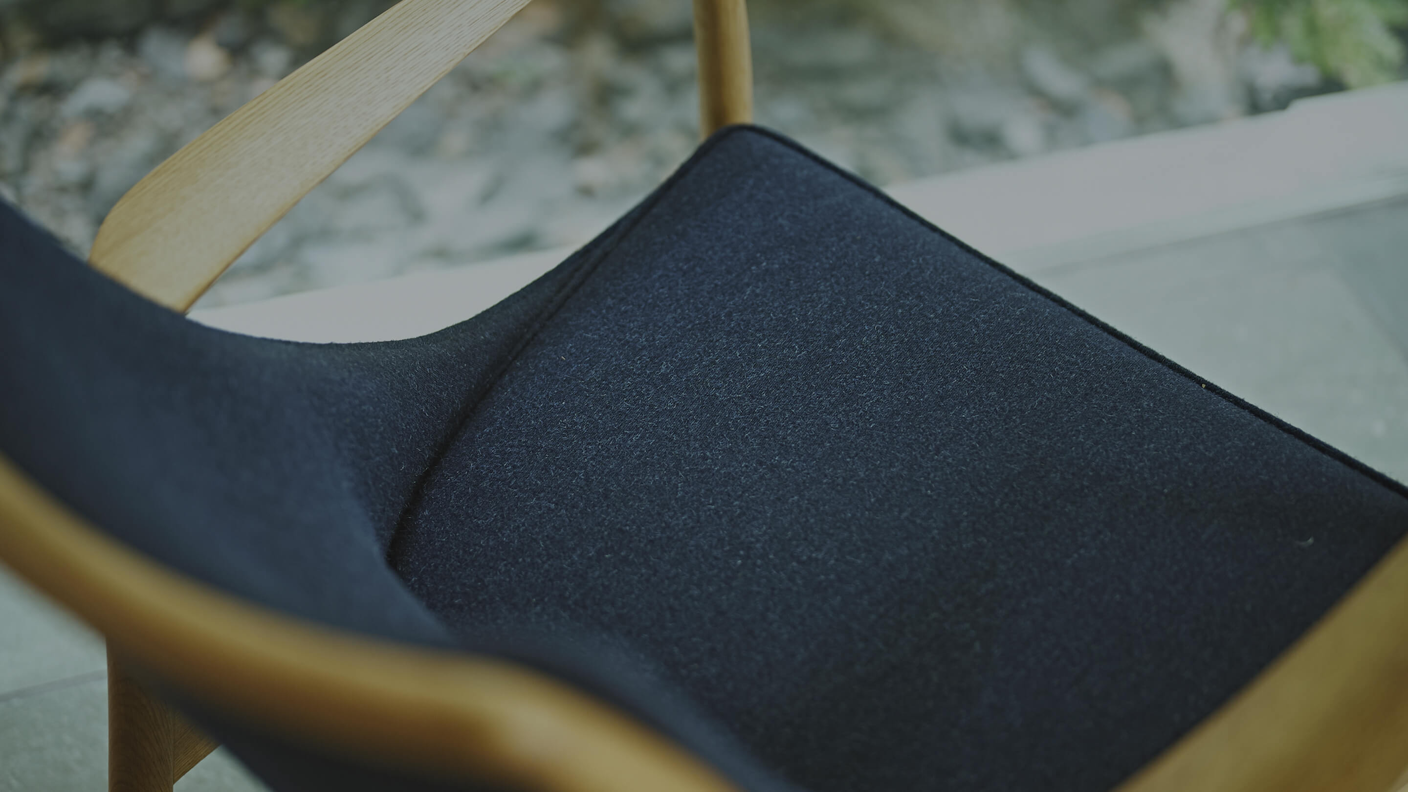 川上さん自身が何度も自分でその座り心地を確認しながら作り出したラウンジチェアは、極上の座り心地を提供する。